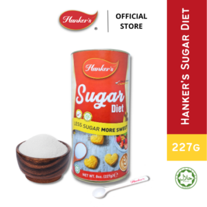 Hankers Sugar Diet Sweetener retains the authentic sweetness of sugar cane with no unpleasant aftertaste. 1 sachet(1g) of Hankers Sugar Diet is equivalent to 2 teaspoons sweetness of regular sugar.